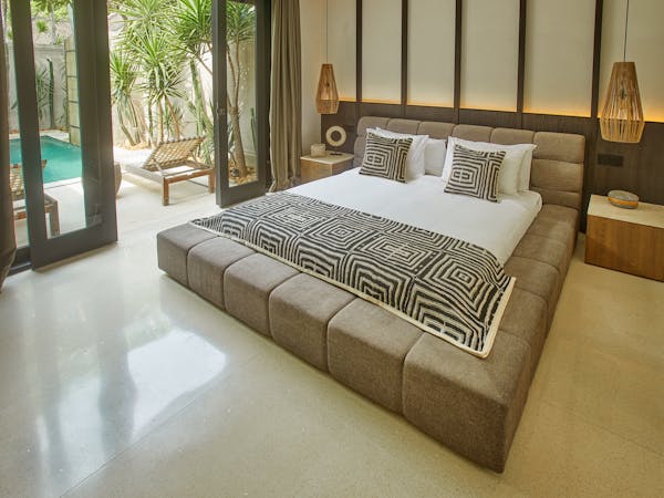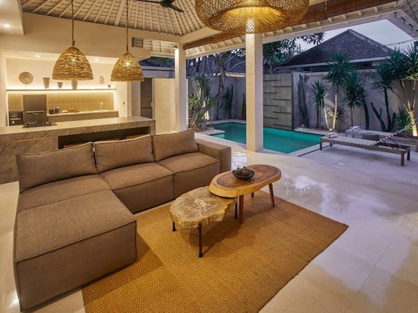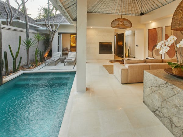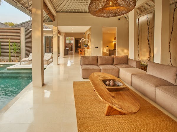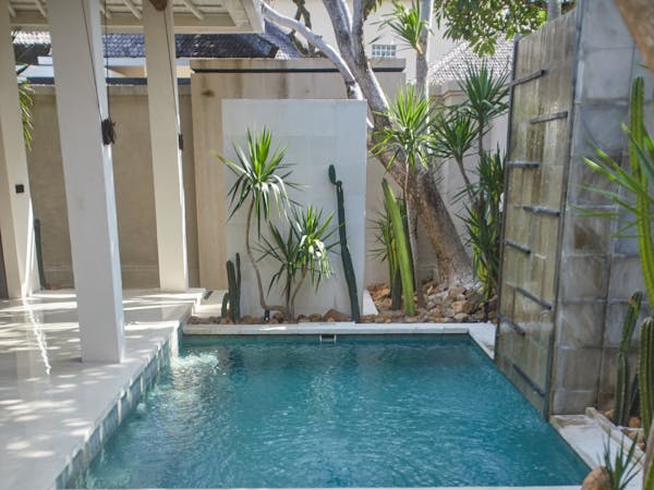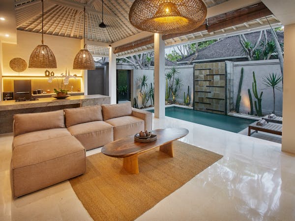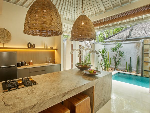 Our luxurious 2 bedroom villas feature private pools, open lounge, dining and fully fitted kitchens. Both bedrooms have queen-sized beds with open concept ensuite bathrooms with spacious showers and large, deep baths. These villas are fitted with large, flat-screen TV, entertainment systems, and complimentary Wi-Fi. At Ahimsa Beach, a selection of breakfasts is served daily in the comfort of your villa. Guests are encouraged to soak up the sun or just relax on the resort's sun lounges on Jimbaran beach.